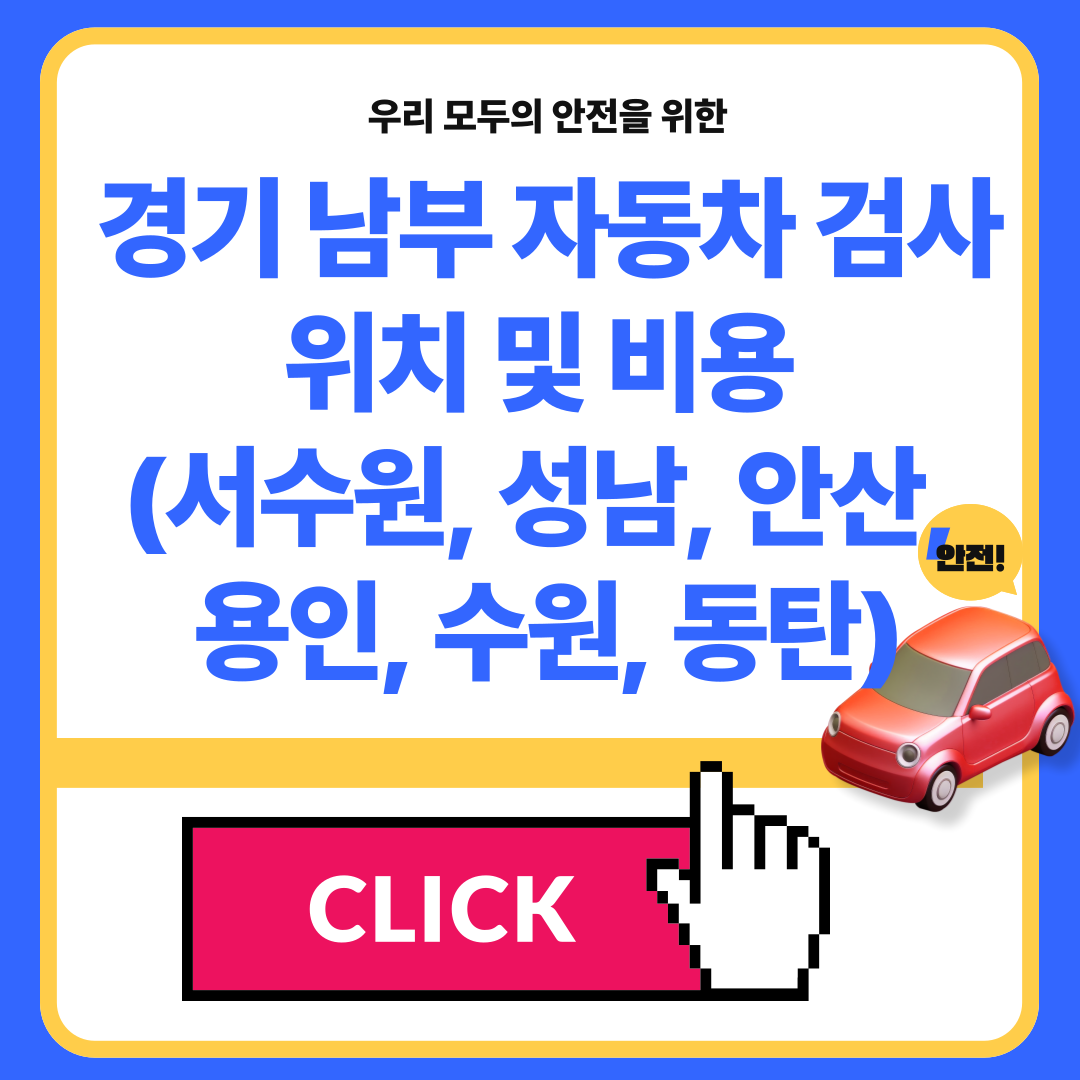 이번 글은 경기도 남부(서수원, 성남, 안산, 용인, 수원, 동탄) 지역의 자동차 검사소 위치와 비용, 사전예약과 검사비 할인감면내용을 바로 확인하실 수 있게 정리했습니다.