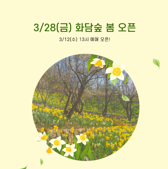 그렇다면, 화담숲을 더욱 알차게 즐길 수 있는 1일 추천 코스와 최신 예매 정보를 알아보겠습니다. 3월 12일 오후 1시 예매 오픈 3월 28일부터 입장 가능합니다.