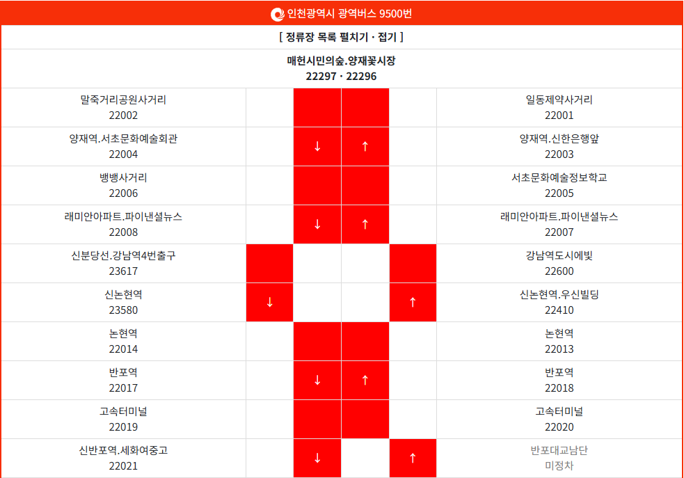 ▣ 광역버스 9500번 정류장 및 정류장 번호
