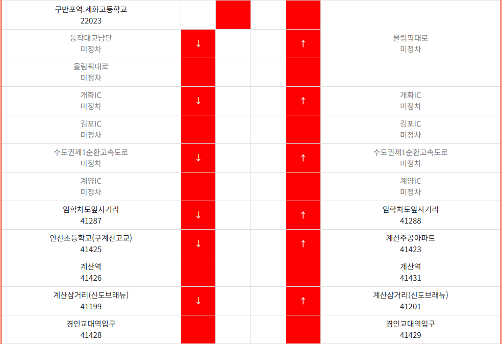 - 주말 및 공휴일 : 평일과 동일, 단 교통 상황에 따라 변동 있음