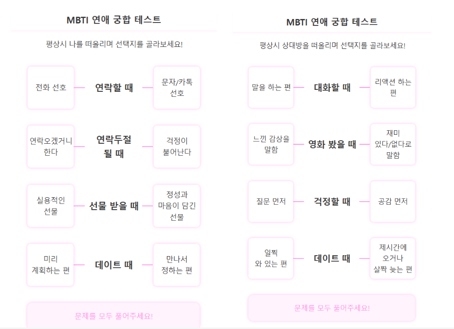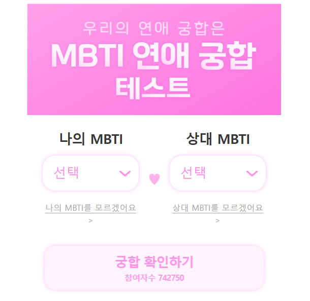 MBTI 연애궁합테스트 지금 바로 시작해 보세요.