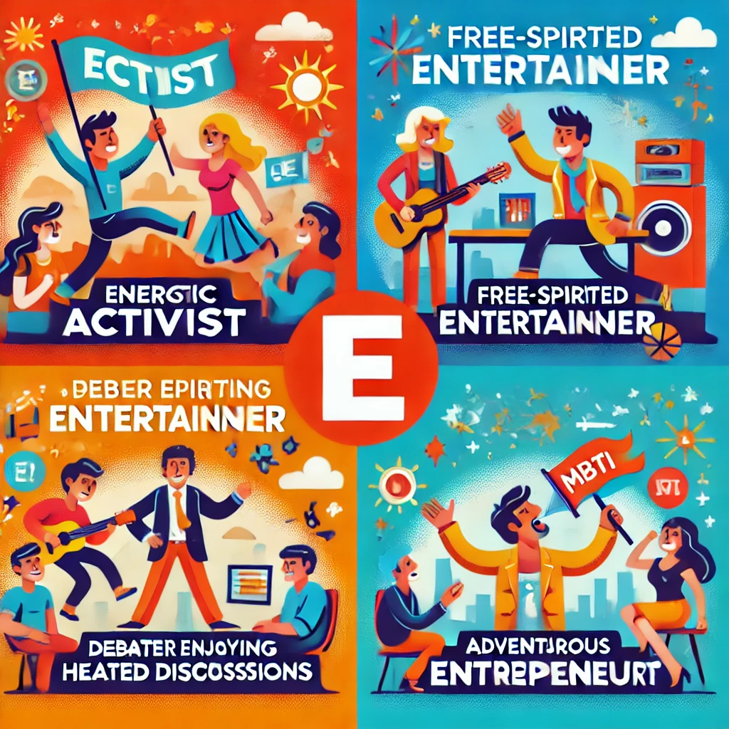 E는 대화와 함께 활동을 중시하며, 소통을 통해 친밀감을 쌓는 기본적은 성향을 갖고 있습니다.